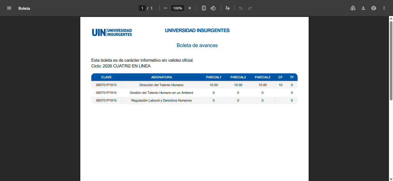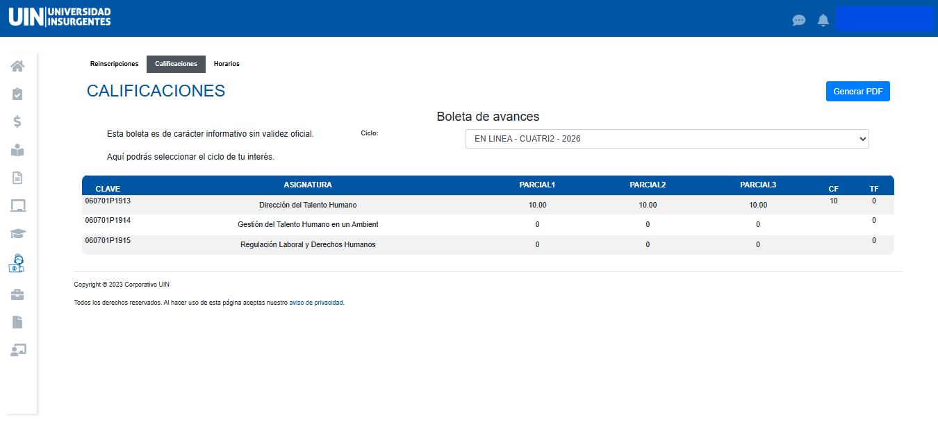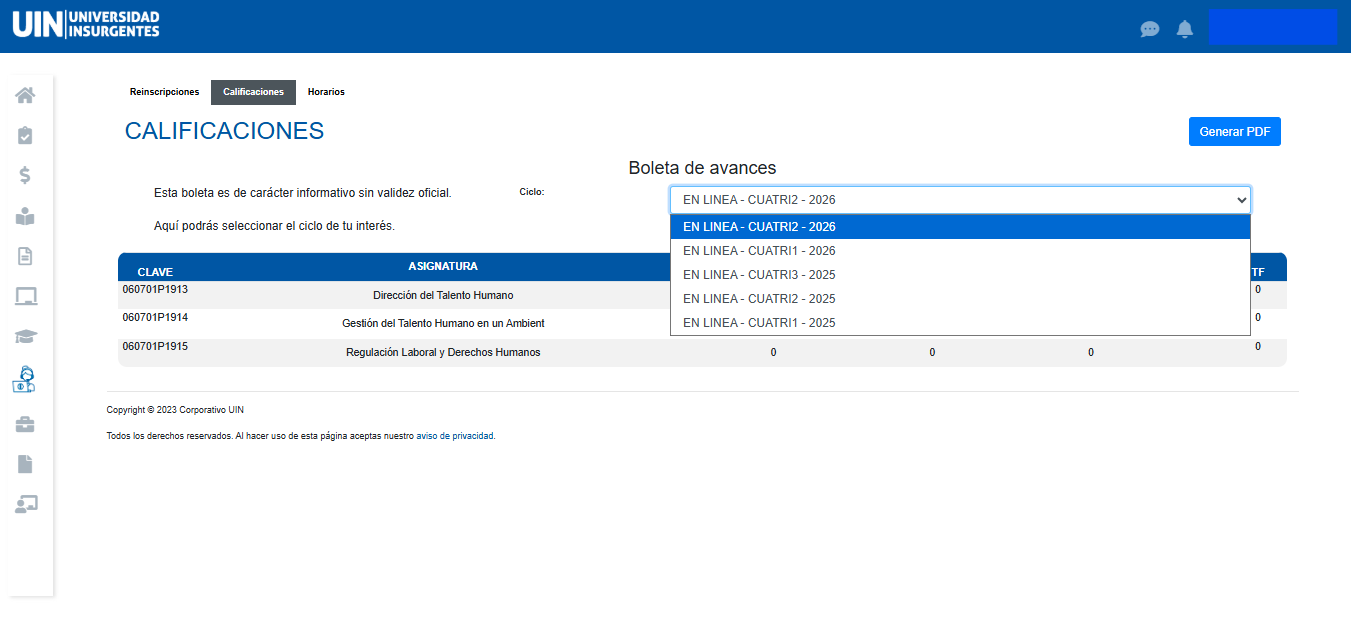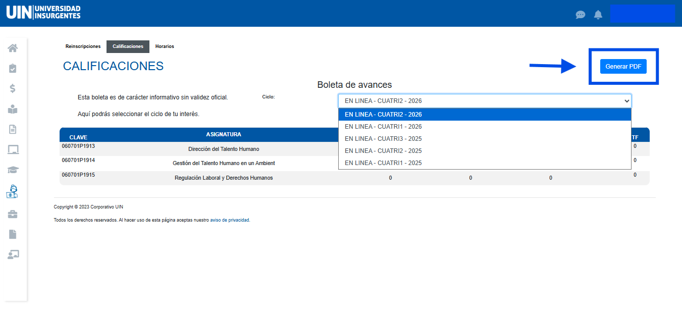 Paso 4. Obtener boleta de avances por ciclo